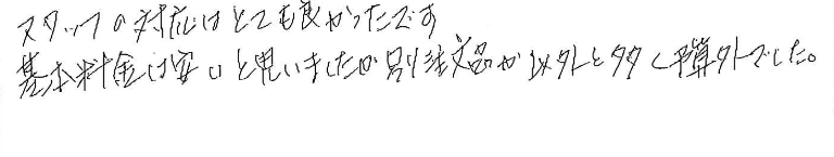 基本料金は安いと思いましたが別注文品が以外と多く予算外でした。