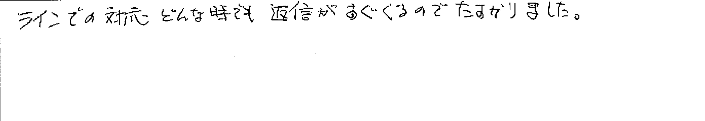 ラインでの対応、どんな時でも返信がすぐくるのでたすかりました。